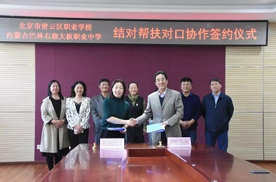 密云区职业学校与河北蔚县职业技术教育中心、河北滦平县职教中心、内蒙古赤峰市巴林右旗大板职业中学、内蒙古通辽市库伦旗民族职业中等专业学校签订协议。