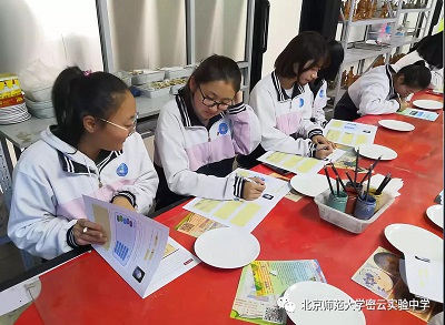 参观了艺术家们的瓷画作品,同学们也跃跃欲试,在讲解员的带领下,同学们开始制作属于自己的瓷画。