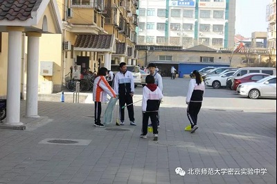 今年是第56个“学雷锋纪念日”,北京师范大学密云实验中学高一年级全体学生在班主任带领下走进檀城东区开展"弘扬雷锋精神 参与志愿服务"活动。