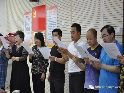 首先,全体教师练习朗诵《我骄傲,我是一名教师》。学校干部、教师全身心地投入到朗诵练习中。