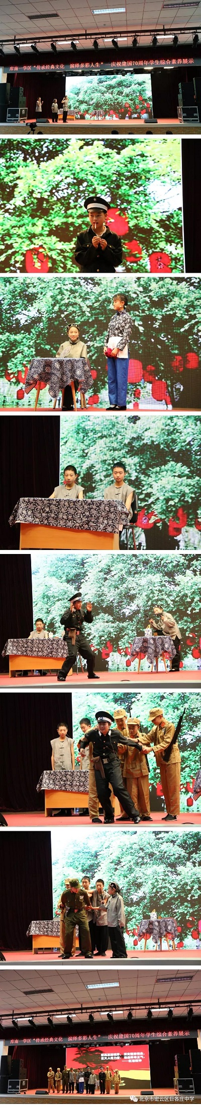 习近平主席在亚洲文明对话大会开幕式演讲时说:中华优秀传统文化是我们最深厚的文化软实力,也是中国特色社会主义植根的文化沃土。密云区库南学区各校积极行动起来,开展读书节活动开展。6月6日上午,齐聚在巨各庄中学,传承经典文化聆听经典中的铿锵音韵,用相声、课本剧、乐曲、歌曲等重现经典中的华美篇章,把课堂上老师指引我们把名著中的人物娓娓道来,生龙活虎。舞台上我们让教材中的人物粉墨登场,点燃激情,让奋斗在青青校园中弥漫,让青春在文化艺术中闪光。此次汇演在歌唱祖国歌声中圆满结束!