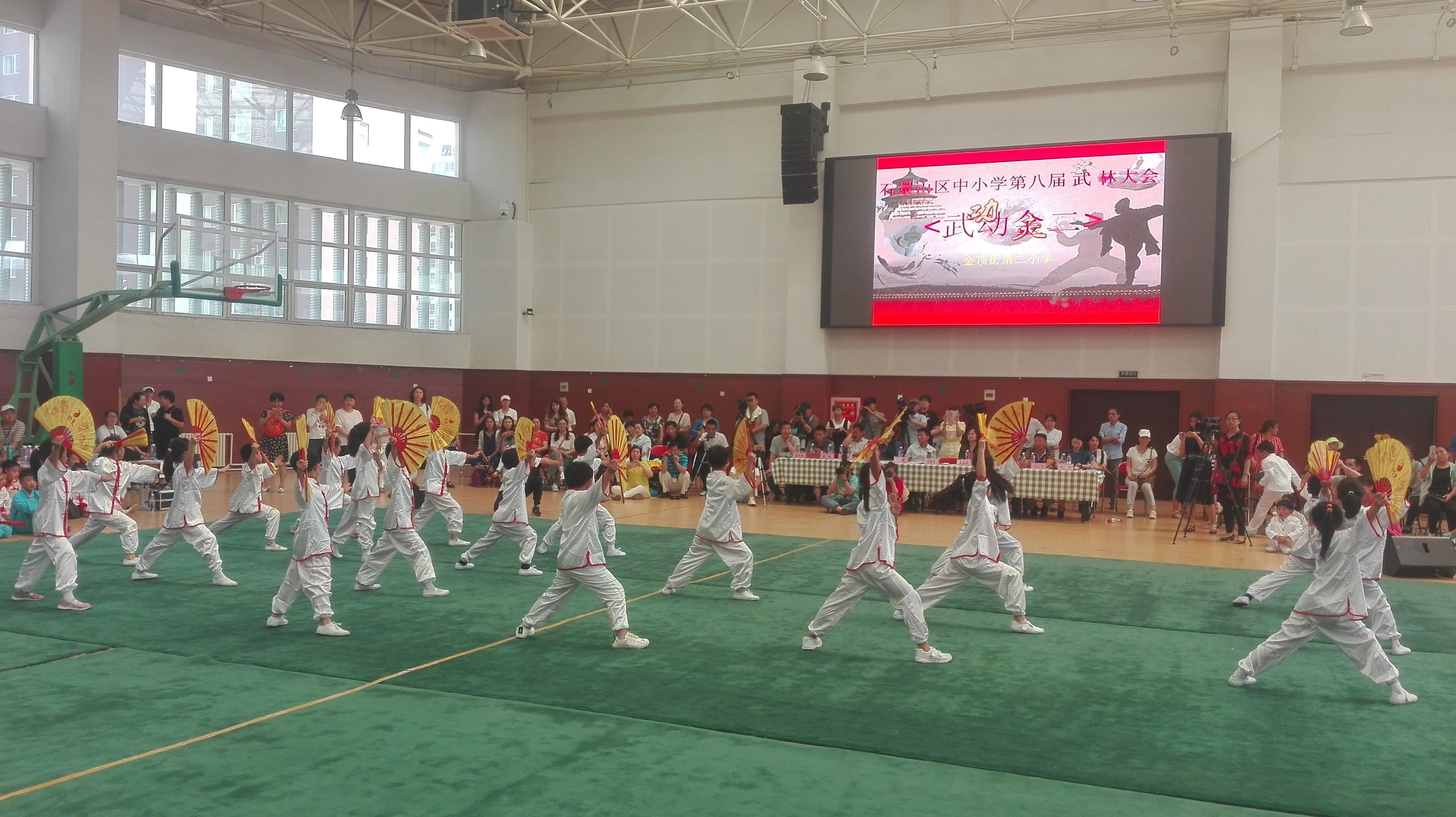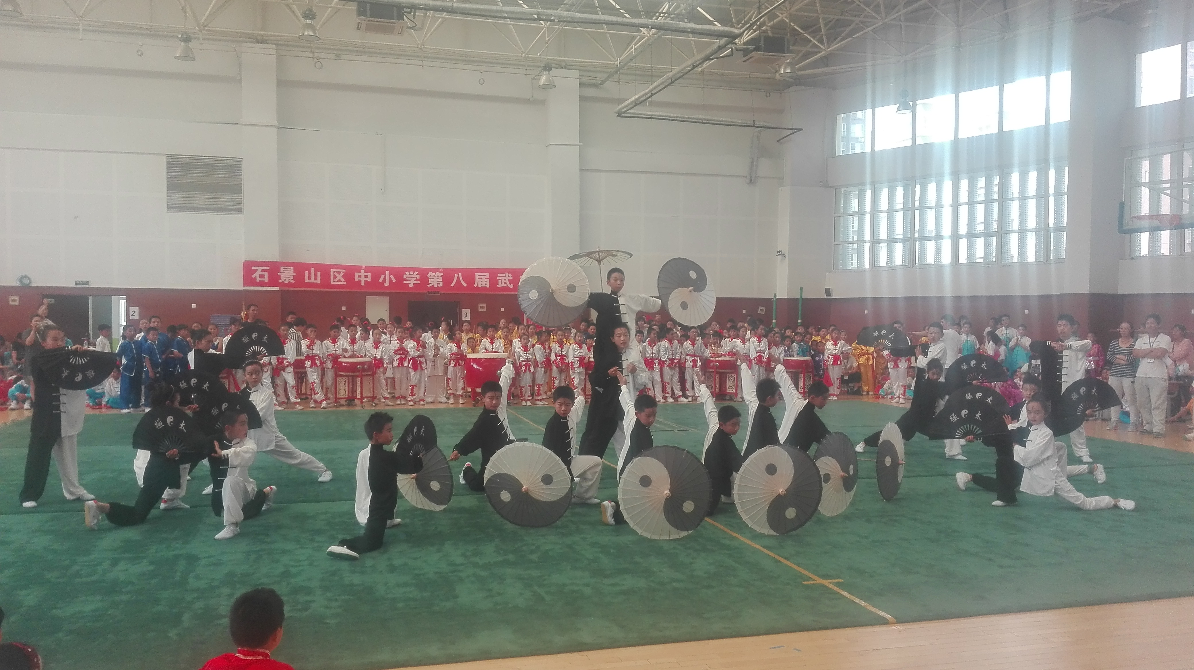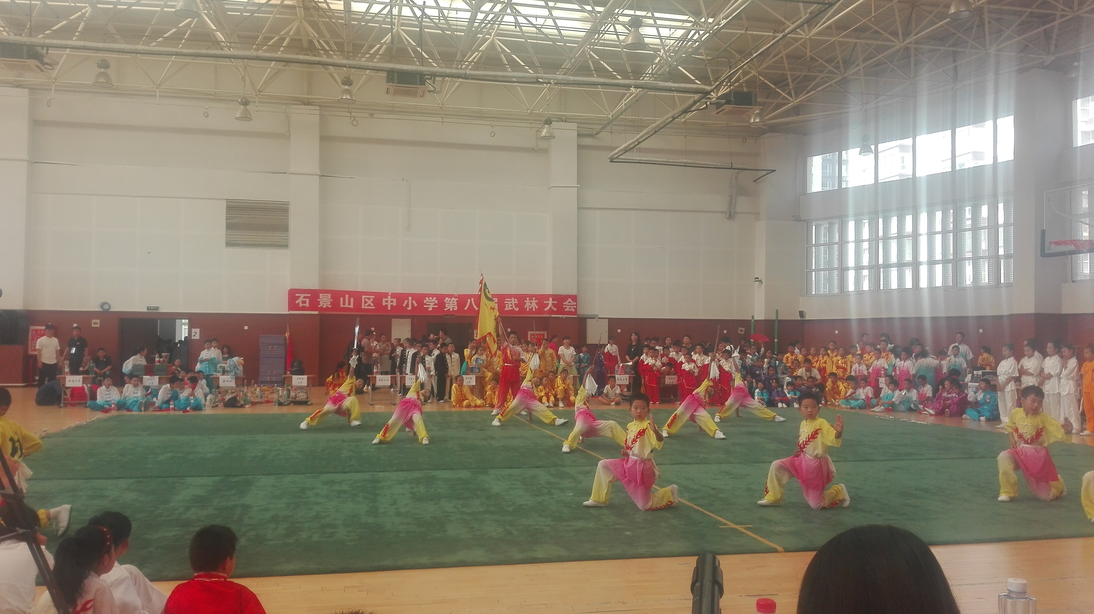 2017年5月26日下午在石景山区金顶街第二小学体育馆举办了2017年武术进校园项目展示活动暨“石景山区中小学第八届武林大会”。武术进校园项目自2007年9月在我区正式启动以来,石景山区教委与山东莱州中华武校紧密合作,项目学校高度重视,将武术纳入学校整体课程设置和赋予课时保障,成立武术教学研讨组,并利用课间操、晨练等时间进行全校练习。每所学校安排专门的武术教练,2016年覆盖学前教育、培智教育、小学、初中试点校31所,每年武术教练员正式授课12000余节,参与教学班级300个,涉及学生9000余人。对于继承和发扬中华传统武术文化和促进学生全面健康发展起到重要的助推作用。为充分展示武术进校园项目实验成果,进一步推广和深化项目实施,石景山区委教育工委、区教委研究决定每年举办一次武术进校园项目展示活动暨武林大会,