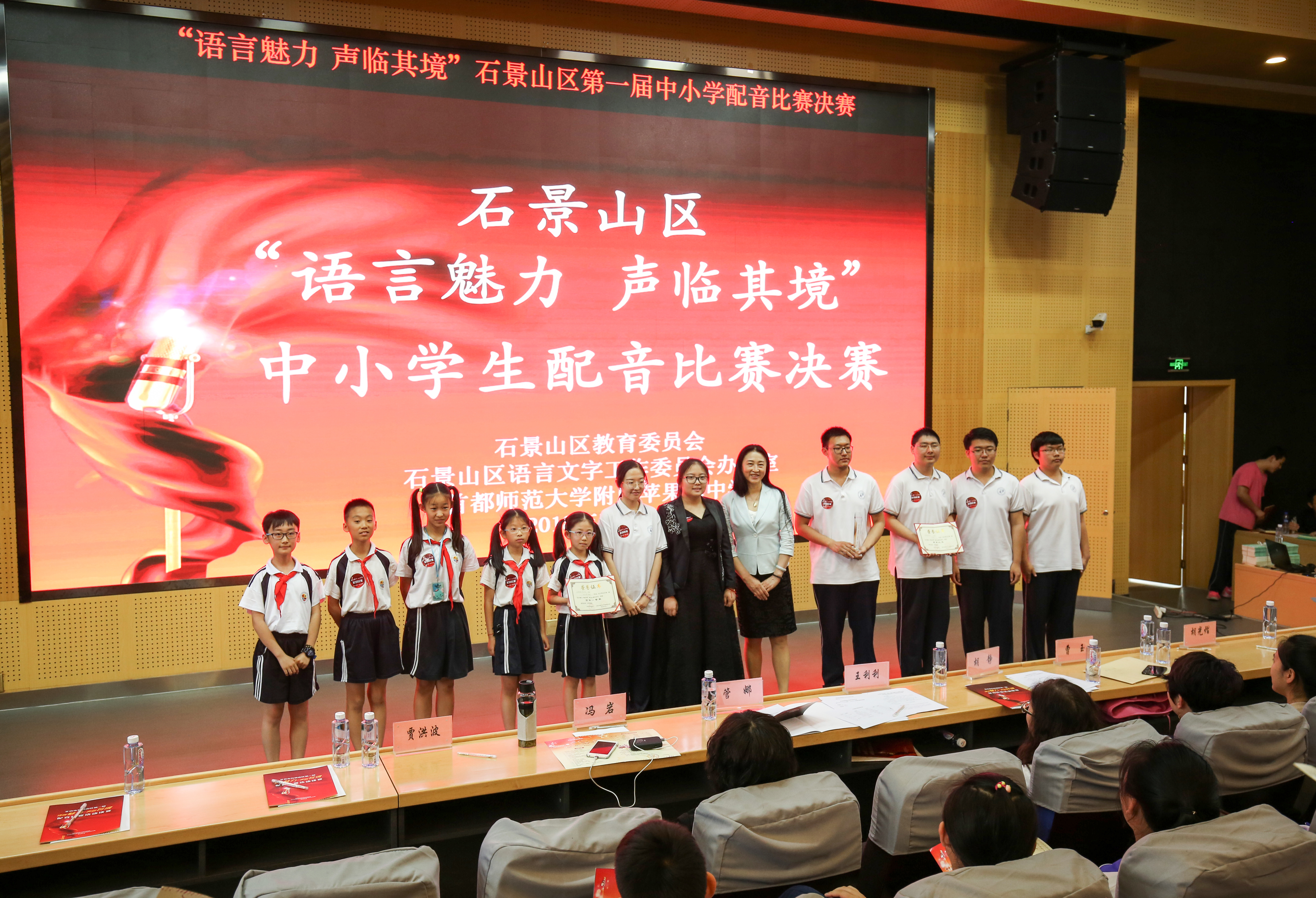 5月25日,由石景山区语言文字工作委员会办公室、石景山区教育委员会共同举办的石景山区第一届“语言魅力声临其境”中小学生配音比赛在首师大附属苹果园中学举行。北京市语言文字工作委员会办公室、北京语言文字工作协会、中共北京市委干部理论教育讲师团特聘语言专家、石景山区语言文字办公室、石景山区教委和中小学校师生代表参加了活动。