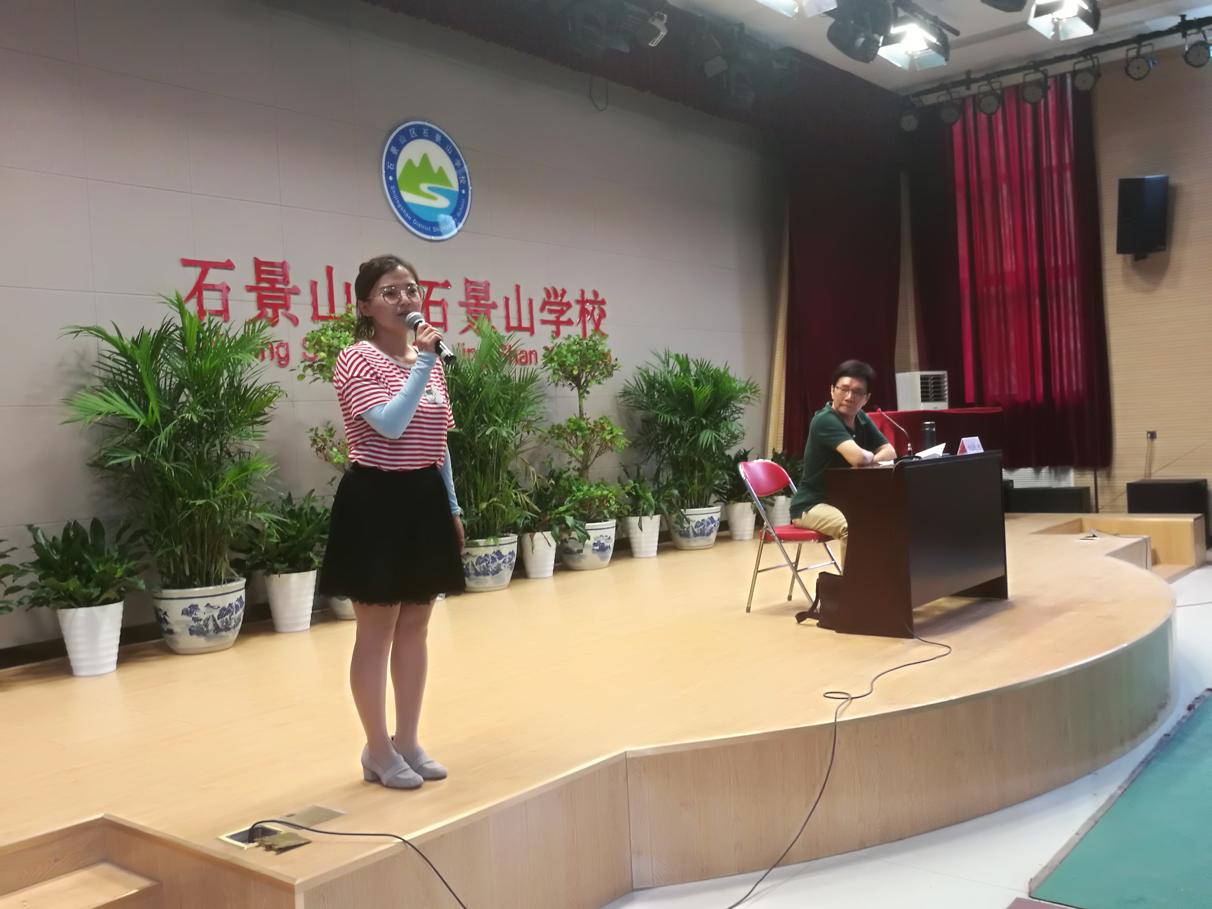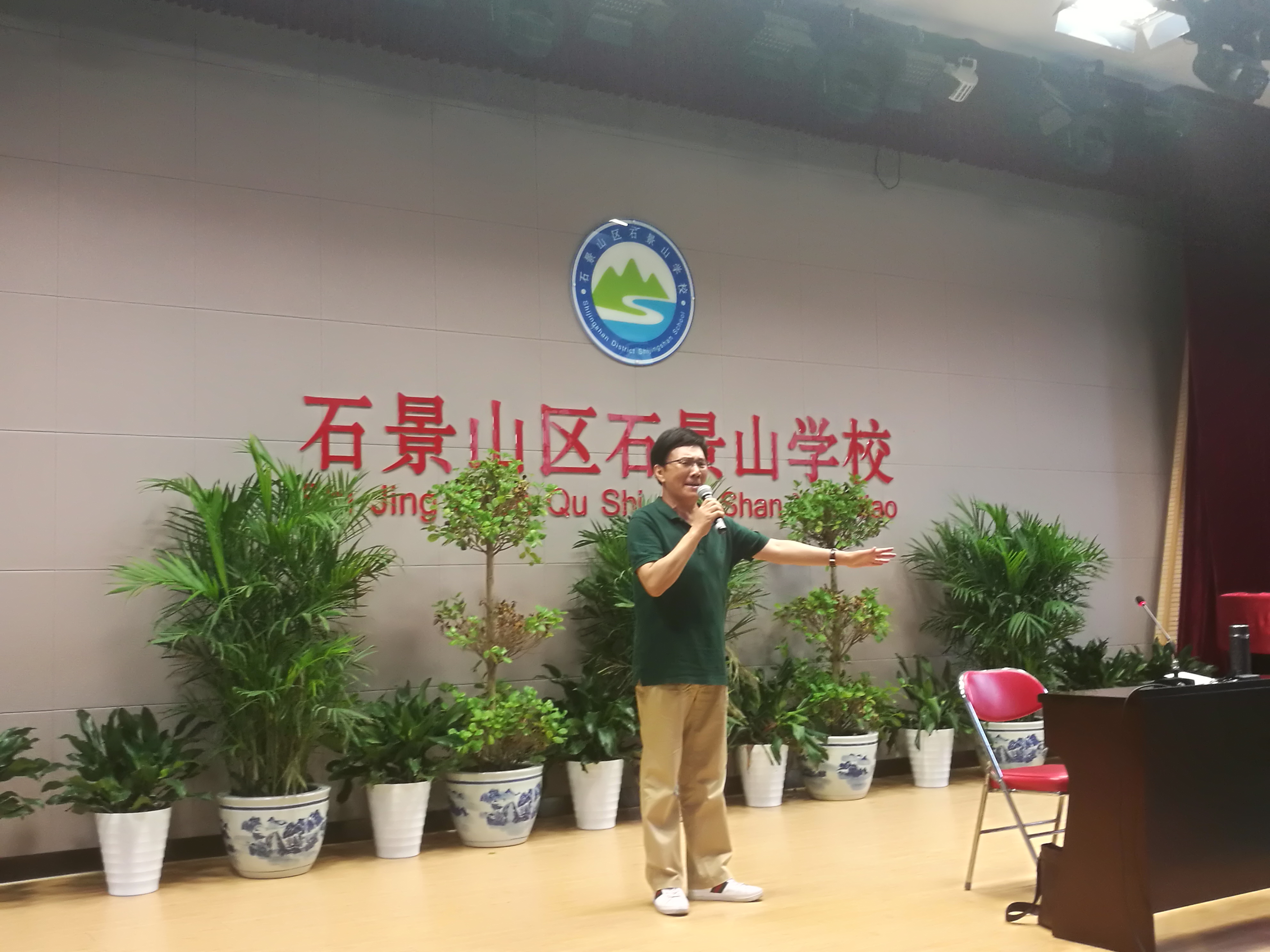 6月8日,诗聚石景山-百姓诵读活动走进石景山学校,中国戏剧家协会会员、中国电影家协会会员、北京朗诵协会理事、总政话剧团国家一级演员、中国著名的影视编剧——刘纪宏老师为教职工带来了一场高效的诗歌朗诵、演讲培训。