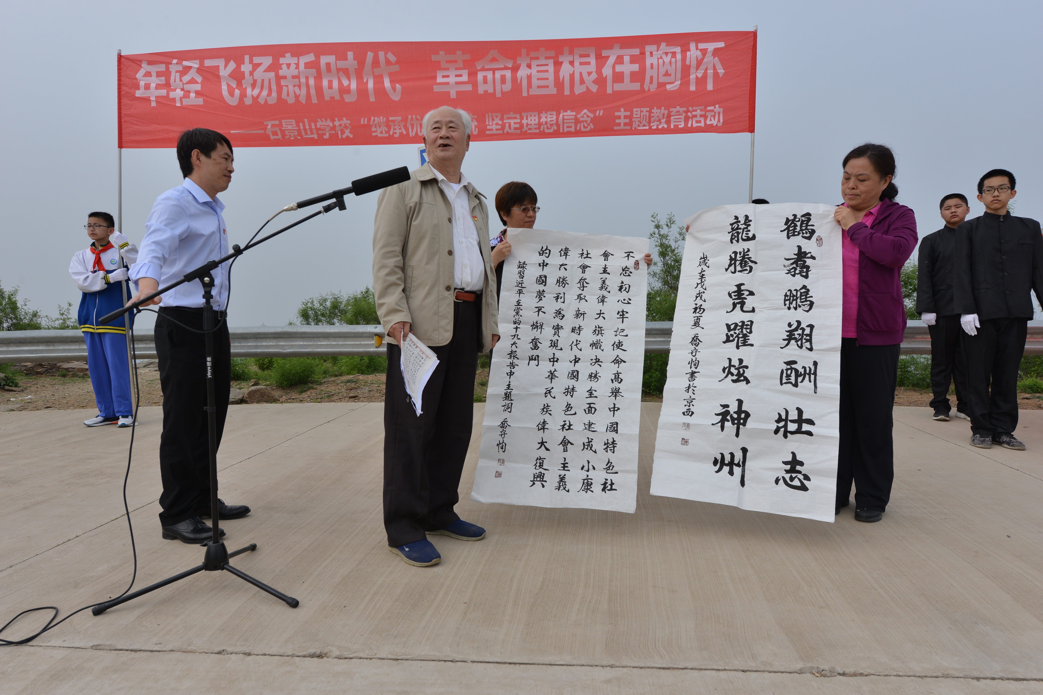 2018年5月14日,石景山学校党团队举办以“年轻飞扬新时代 革命植根在胸怀”为主题的教育活动。五至八年级学生、行政干部、党员、积极分子、教工团员师生共同登上70年前的革命根据地——红光山参加活动。