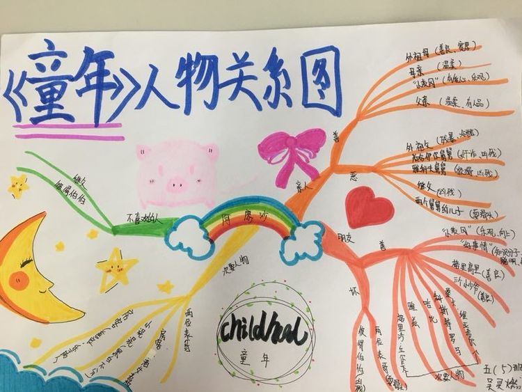 课前学生进行了好书推荐!中期的阅读交流,在老师的引领下,在深入阅读的基础上,学生各抒己见展开了交流。最后老师再次总结了读书的方法,使学生受益匪浅。学会运用思维导图,理清人物关系。不同阶段的阅读,学生都会有不同的问题与感受,这是思维的火花!