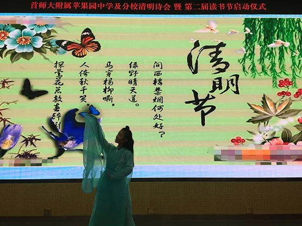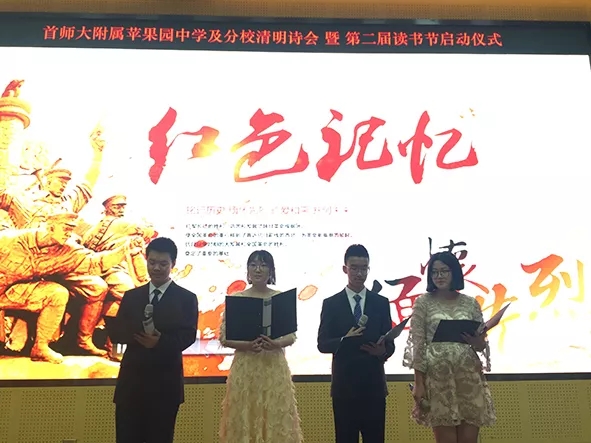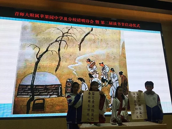 梨花细雨春风起,又逢一年清明时。4月4日,首师大附属苹果园中学及分校,为弘扬民族传统文化,践行社会主义核心价值观,特别举办了以“清明诗意浓 劝学敬先贤”为主题的清明诗会并以此为契机,拉开了苹中第二届读书节的序幕。