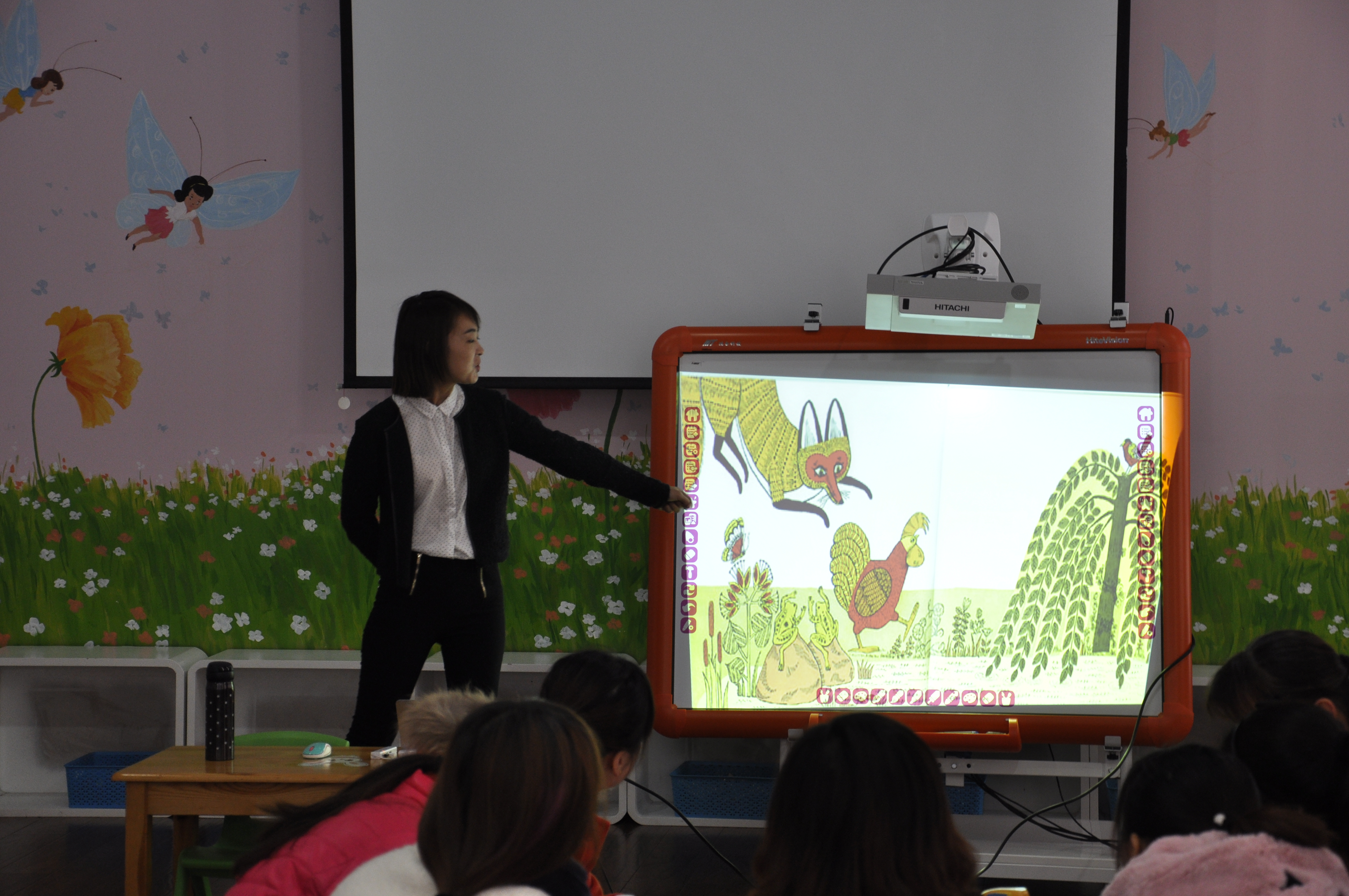 培训中,让教师们了解绘本理念,绘本阅读的教育目标、绘本的指导原则等,通过与培训老师一同进行绘本故事《大卫惹麻烦》的阅读活动,教师们了解到创设良好阅读环境的重要性,掌握了在组织教学活动时教师进行阅读绘本时需要注意的语音、语调、语气等。