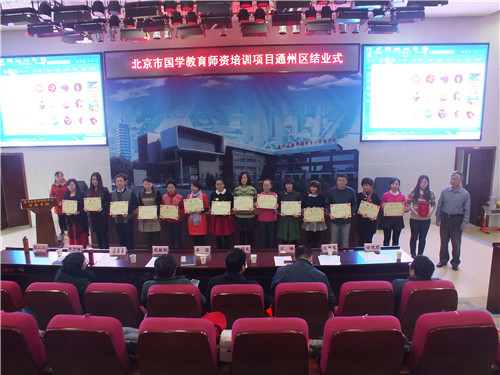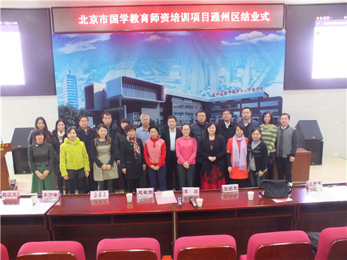2015年12月17日,北京市国学教育师资培训通州培训班结业式在区教师研修中心实验学校举行,北京市教育委员会委员李奕、市教委语言文字工作处副处长安晶晶、首都师范大学中国国学教育学院院长赵敏俐、培训部主任徐建顺、“北京市国学教育师资培训”项目负责人杨美俊,海淀区敬德书院副主任高峰,北京歌华有线数字媒体有限公司常务副总经理刘严、副总经理郭伟,通州区教育委员会副主任王秀东,通州区教师研修中心(通州分院)院长李万峰、副院长苏金良,区语委办邱灏、国学教育实验校负责人和训班的学员共计150多人共同参加了结业式。