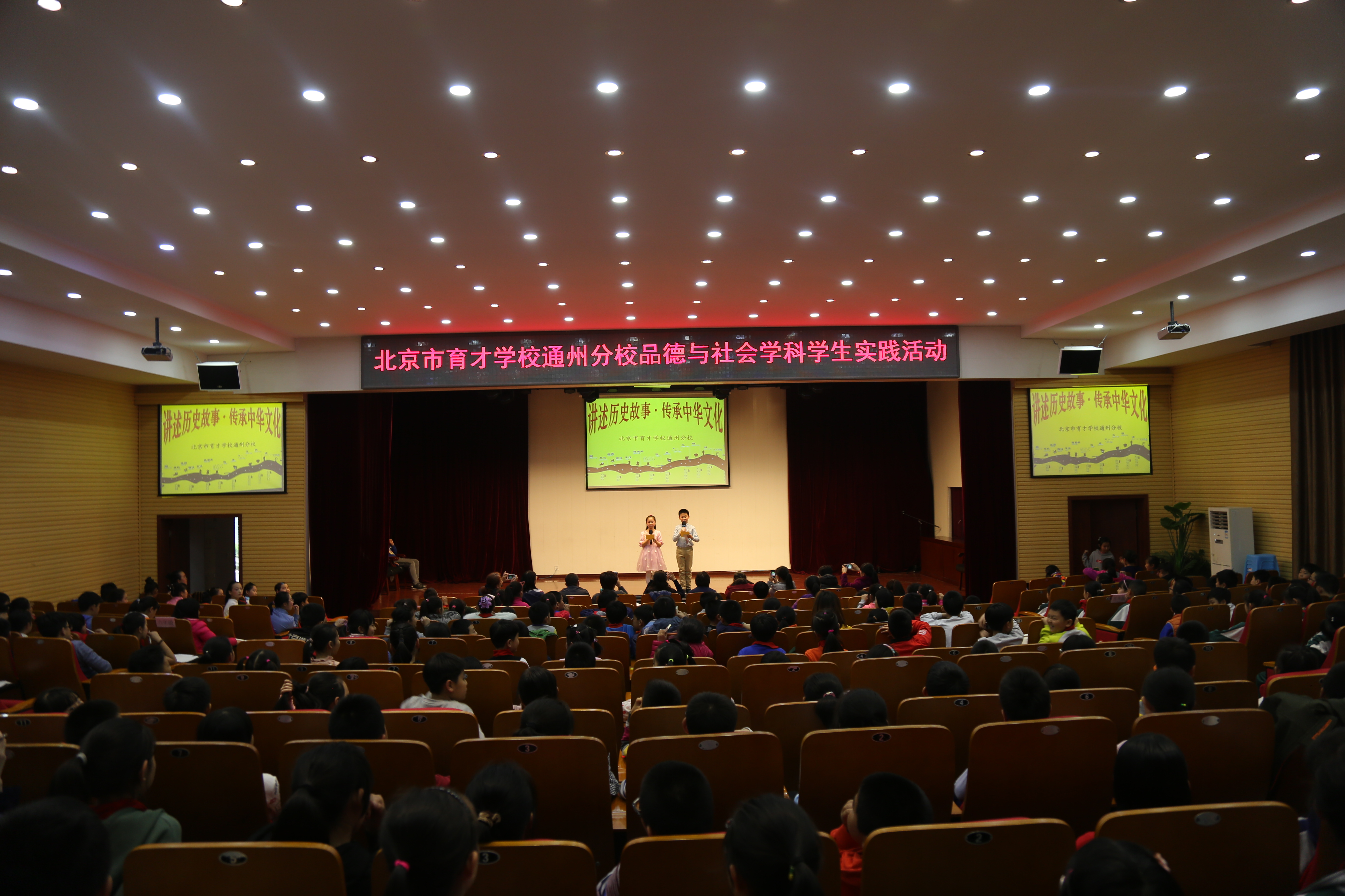 泱泱华夏,五千年的历史积淀了深厚的中华文明,为了更好的传承中华传统文化,鼓励学生多读历史故事,让学生在读书中受到中华优良传统文化的感染和熏陶, 4月13日,育才通州分校小学部《品德与社会》学科举行了学生社会实践活动“讲述历史故事•传承中华文化”主题演讲比赛。北京教育学院政法系党支部书记赵力副教授、北京教育学院讲师武蔚、育才通州分校教务处张红霞副主任和学校三至六年级部分师生及家长共计300余人齐聚学校报告厅参加活动。