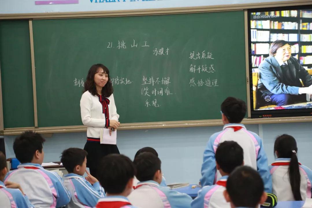 活动伊始,叶雪艳和杨妍两位教师分别进行了课堂展示。叶老师讲授的《小公鸡和小鸭子》一课,通过朗读比较、联系上下文,引领学生了解“吃得很欢、也、偷偷地、飞快地”几个重点词语的意思,体会其作用,感受句子表达的生动。将这些词语融合在具体的课文学习中进行,使学生轻松读出句子表达的语气。最后,通过课本剧的创编,小组交流,模拟对话,使课文内容得以升华。杨妍老师讲授了冯骥才先生的经典名篇《挑山工》一课。首先,她将四个简明、突出的问题串联起来,带领学生回顾整篇课文,使学生对课文内容有了整体感知。接着通过小组合作学习的形式,引领学生抓住挑山工的语言描写,体会挑山工的人物品质。合作学习中,杨老师要求明确,学生汇报有序。通过交流理清文章主线:提出质疑——解开疑惑——感悟道理。最后进行了1+X拓展提升,将本课所学内容与同作者同主题文章整合,使学生真正走进作者的内心世界,感受人生感悟散文的深厚哲理。