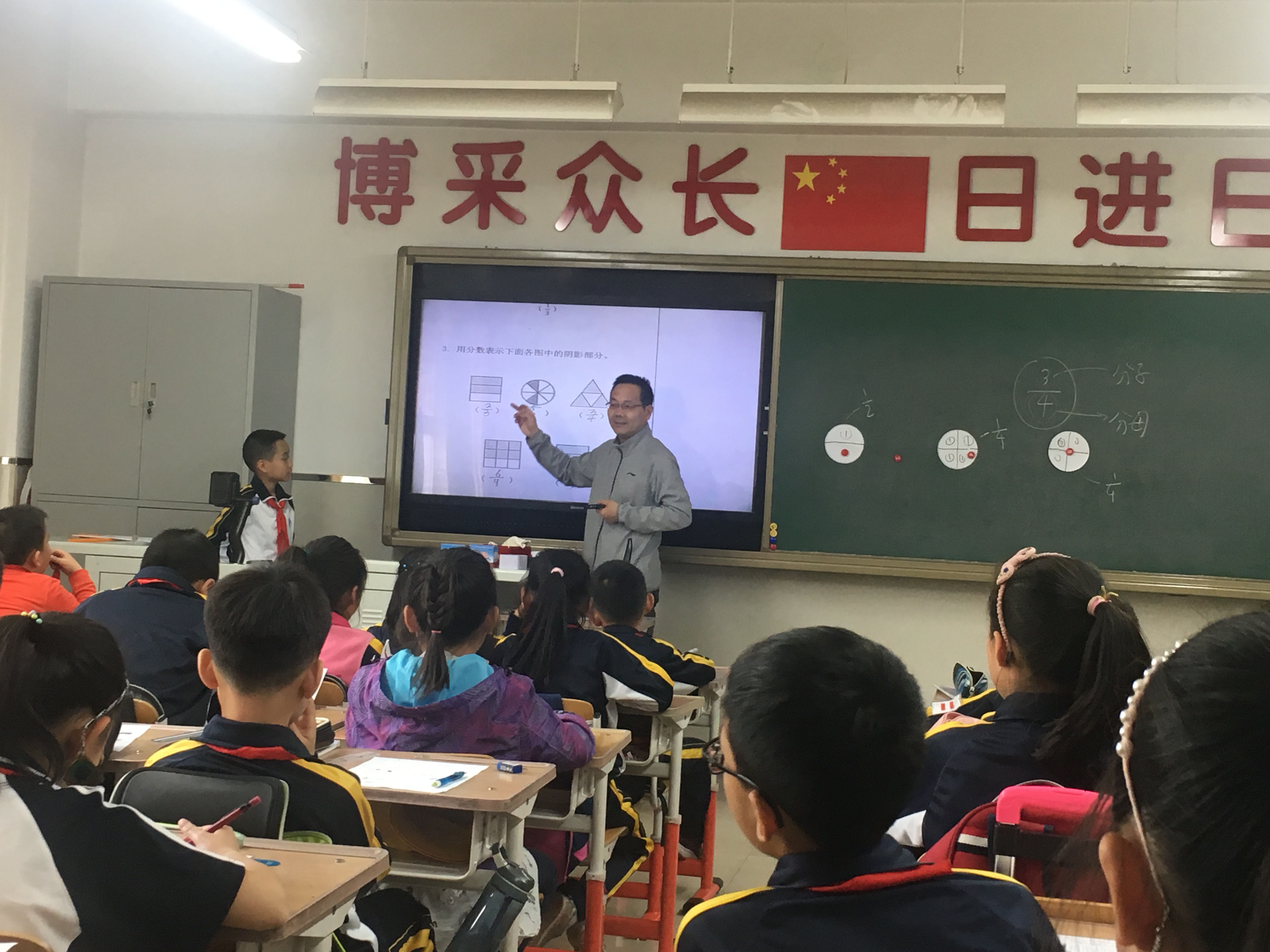 中年级组的宋赫男老师有幸和崔教授同台,进行了《分数的认识》这一内容的同课异构,宋赫男老师课上设计了分一分、折一折、画一画等多种教学活动,让学生通过动手操作经历学习知识的过程。崔教授的先从孩子的生活实际入手,调动孩子的积极性,然后通过引导学生画图建立模型,培养学生的思维能力和实践能力,孩子们在课堂上思维十分活跃,勇于表现自己,主动探索知识,不断挑战自己的思维极限,收到了很好的课堂效果。