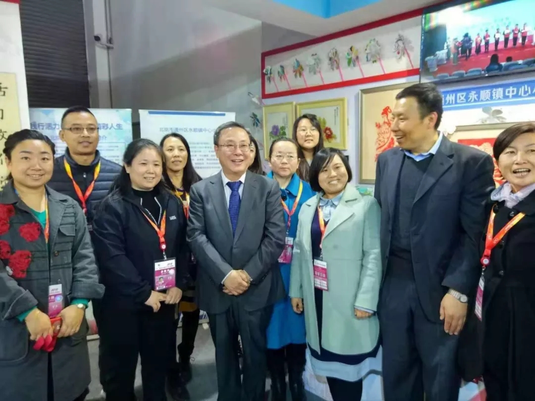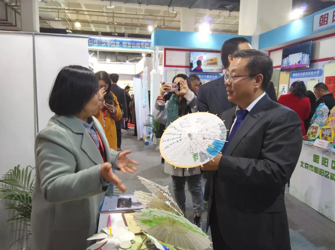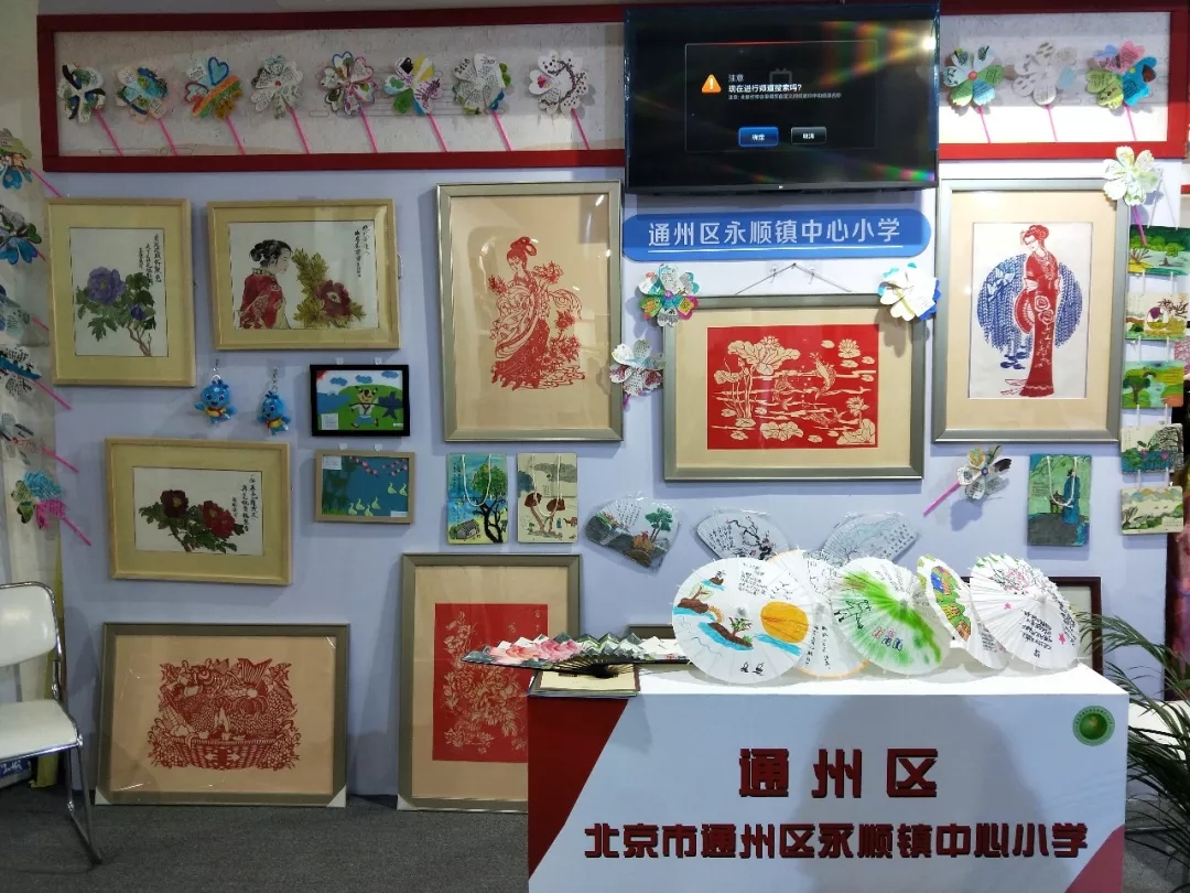 2018年10月25日至28日,永顺镇中心小学经通州区教委推荐,参加了第二届中国北京国际语言文化博览会----北京市中小学语言文化展。在为期四天的展会上,永顺镇中心小学呈现了学校依托课程建设展开的系列语言文字工作成果,精巧的工艺剪纸,精美的花卉和侍女绘画,精致的手绘扇面、纸伞和风车……一幅幅师生作品引发了观展群众对学校艺术教育成效的慨叹。10月26日上午,北京市教委刘宇辉主任莅临我校展区参观,在听取我校教育教学工作汇报后,表达了对北京城市副中心小学教育的深切关注,希望学校在运河文化艺术传承方面进一步推陈出新,做出亮点。与此同时,展览也吸引了部分家长和学生专程造访,寻找自己和同学的作品,个个洋溢着自豪与喜悦之情。此外,一把把手绘小纸伞还吸引了国际友人驻足观赏,久久不忍离去……