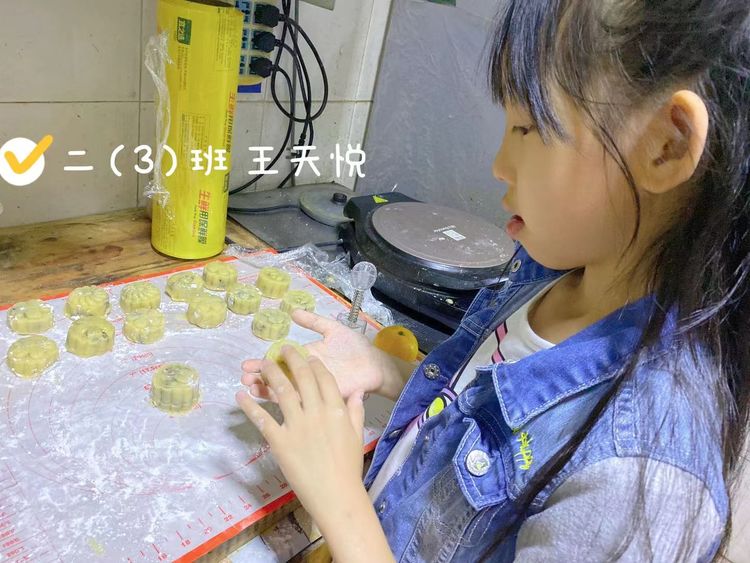 为了定格这美好的中秋瞬间,三四年级的同学们积极踊跃地当起了摄影师,拍下来在这个中秋的精彩瞬间,记录下了这美好的回忆。下面是一个同学在家中做月饼的照片,我们的同学真是厨房小能手!