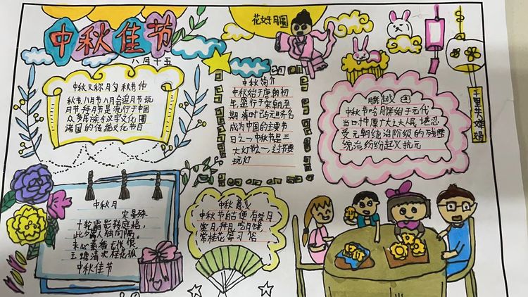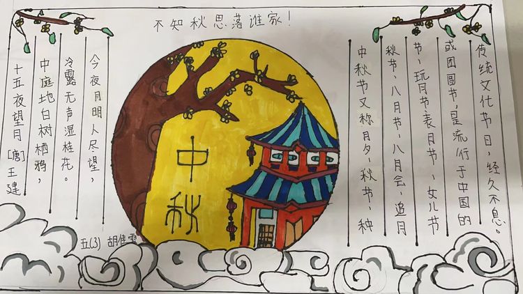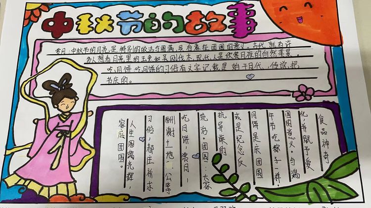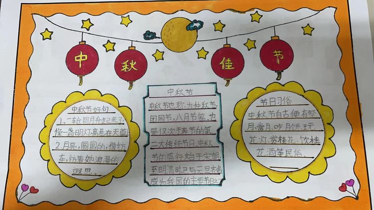 五六年级的同学们,收集了关于中秋节的来历、风俗、传说、诗歌,并用多彩的手抄报的形式展现出来,彰显了他们对中秋节日的热爱和对我国传统文化的痴迷,让中华文化的经典能够代代传承,生生不息。