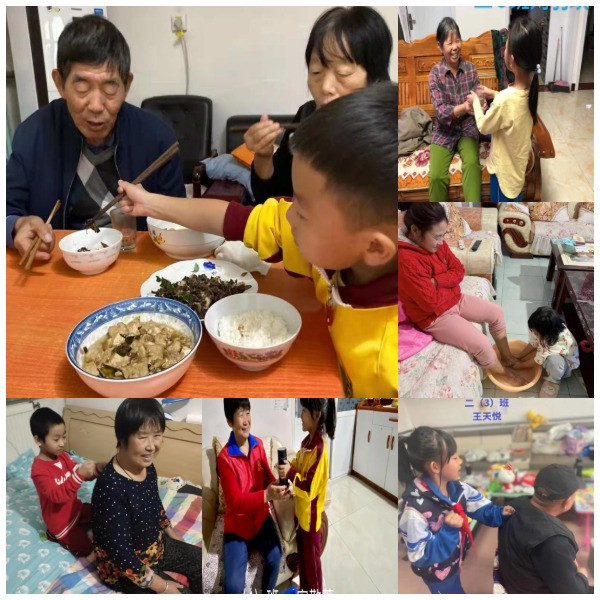 一二年级的小同学用自己的实际行动为家里的老人送上了重阳节温暖的祝福。