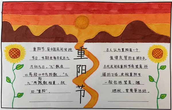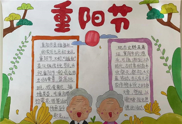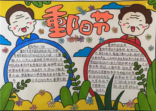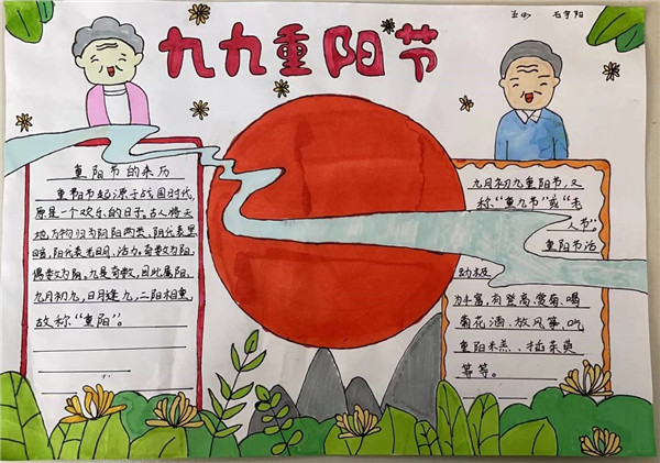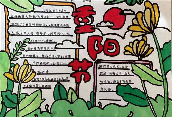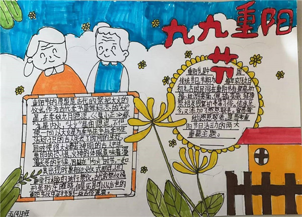 五六年级同学通过老师讲述和上网搜集,了解了许多关于重阳节习俗,有的同学会讲孝亲敬老的小故事了、有的同学学习并背会了与重阳节有关的诗句、有的同学利用了解到的知识制作了精美的手抄报。