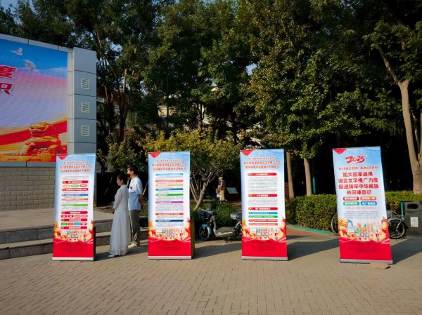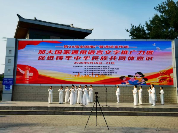2025年9月15日-21日为第28届全国推广普通话宣传活动周,本届推普周的宣传口号是:“加大国家通用语言文字推广力度,促进铸牢中和民族共同体意识”,通州区教委、区语委高度重视、精心组织,各成员单位、学校、社区积极响应,通过举办一系列特色鲜明、互动性强的推广活动,在全区范围内营造了学习普通话、使用普通话的浓厚氛围,9月21日上午,通州区教委、区语委在梨园镇云景里广场广场开展了第28届全国推普周集中宣传日活动。