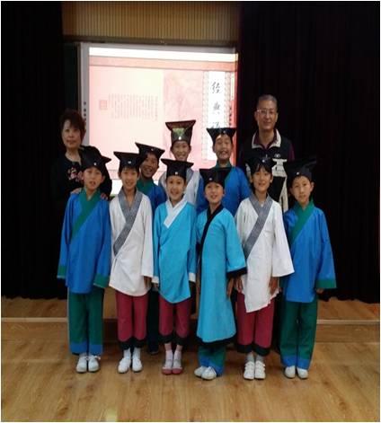 据年段特点和学生的诵读内容,在学生中开展有趣、有效的国学竞赛活动。一、二、三年级以《三字经》为内容,结合硬书法开展铅笔书法比赛、诵读、讲故事比赛。四、五、六年级以《弟子规》为主要内容,结合软笔书法开展经典诵读软笔书法竞赛,诵读、演讲活动。孩子们将平时的诵读积累,进行艺术的整合和编排,分别体现各具特色的文化主题和内涵,开展经典诵读的汇报活动。三年级学生吟诵的《三字经》获得区组织奖,少儿B组一等奖,赵苏燕、刘莹老师获教师指导奖。这些活动的开展有效地激发学生学习国学的热情,为形成学生良好的习惯、健全的人格、和谐的个性起到促进作用。