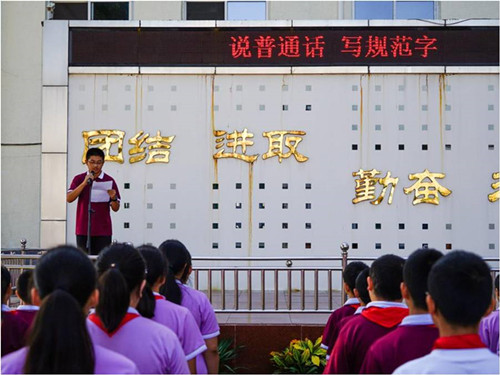 8.开展校园内人人讲普通话活动。要求学生从早晨进入校门开始,与老师、同学交谈必须讲普通话,养成讲普通话的习惯。鼓励学生在上学、放学路上及出门游玩时留心寻找不规范用字,把校园“啄木鸟活动”推广到了校外。