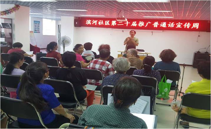 9月15日,展览路街道迎来了第20届全国推广普通话宣传周,社区居民很早就来到街道,在活动室召集居民开展主题为大力推广和规范使用国家通用语言文字,自觉传承弘扬中华优秀传统文化的讲座。给居民介绍了中国传统汉语言文化源远流长,博大精深,是中华民族乃至世界文明的瑰宝。向居民大力宣传不用方言,用标准普通话交流。让他们也向身边亲朋好友宣传说普通话。期间社区工作人员在小区张贴海,居民来到宣传栏前,认真看着宣传板报,大家都在议论普通话在我们生活中的重要性。我们社区大部分都是老年人,对于普及普通话,居民们觉得非常重要。有的老人来我们街道办事,因为口音的问题,交流困难,办起事来很费劲,通过这几年的普通话普及,老人们也知道学讲普通话的重要性, 活到老学到老,争说普通话,争学普通话,来社区办事交流也方便多了。