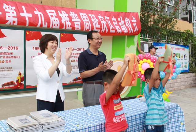 9月12日,延庆区语言文字工作委员会联合区教委在延庆第三幼儿园举行第十九届推广普通话宣传周延庆区启动仪式,仪式上,第三幼儿园的小朋友向大家发出了说普通话的倡议。