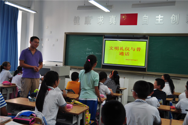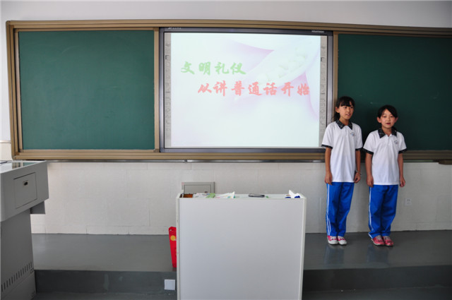 9月16日,延庆第二小学开展“推广普通话 共筑中国梦”第16届全国推广普通话宣传周活动。第一,学校发出“开口讲普通话,动笔写规范字”的倡议;第二,进行了学生演讲比赛,优秀学生代表用普通话在全校师生面前进行展示,讲述自己的梦想;第三,为每位教师发放《通用规范汉字表》《国家推广全国通用的普通话》宣传册;第四,教师代表、学生代表用规范字进行签字承诺。仪式后,班会课上以“推广普通话 共筑中国梦”为主题,师生共同用行动证明,一起讲普通话,一起写规范字。