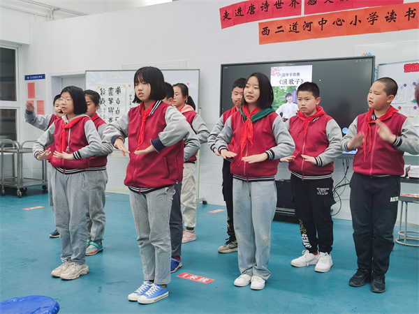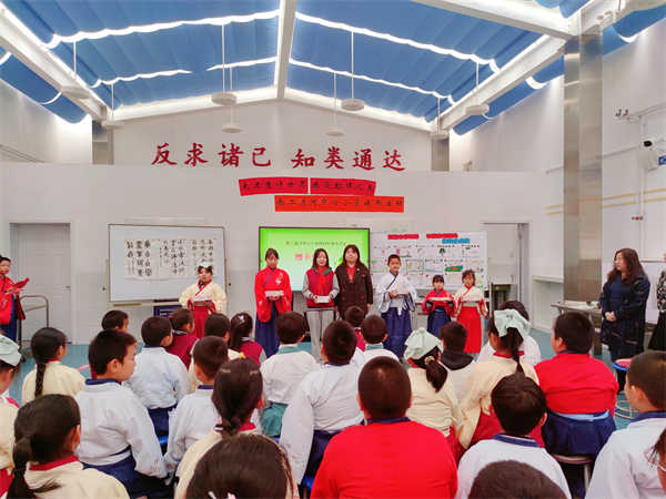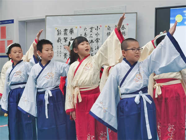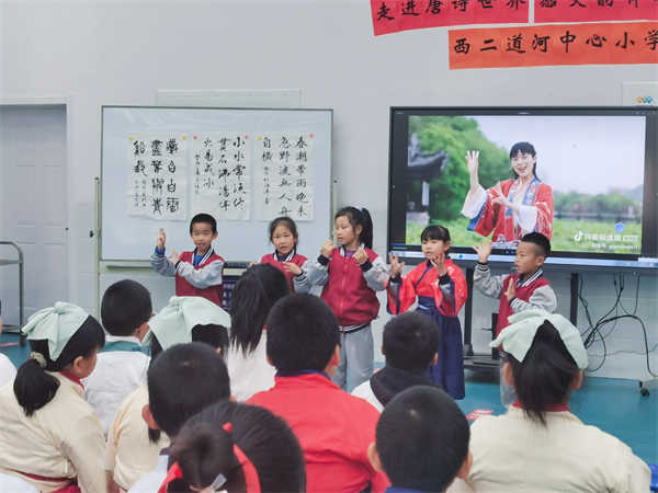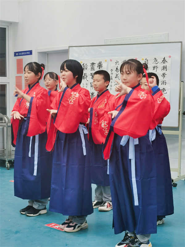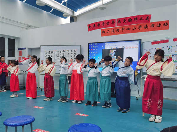 各班分别展示唐诗诵读、唐诗联唱、唐诗手势舞等节目;全体学生齐诵古诗《登鹳雀楼》将活动推向高潮。