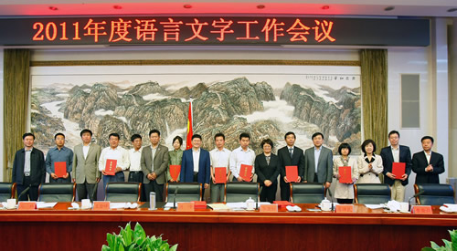 5月11日,2011年度北京市语言文字工作会议在市政府召开,教育部副部长、国家语委主任李卫红,北京市副市长、市语委主任洪峰出席会议并作重要讲话。会议由市政府副秘书长马林主持。市语委各委员单位的负责同志参加了大会。出席会议的还有教育部语用司司长、国家语委副主任王登峰。
