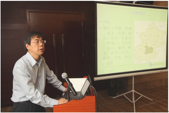北京语言大学副校长、中国语言资源有声数据库北京库建设项目首席专家曹志耘教授介绍了项目建设的筹备工作、研究方法、工作步骤及预期成果。北京市共设11个调查点,由5个调查团队分别负责,调查的对象、内容、方法,严格按照《中国语言资源有声数据库调查手册汉语方言》进行。每个采录点遴选7位发音人,调查内容涉及北京方言概况、基本的语音、词汇、语法现象以及自然话语和地方普通话等,调查方法包括实地调查、笔记、录音、摄像、照相。数据库建成后,可以通过加载有关的软件标记来使它具有展示、检索、比较、分析和互动的功能。