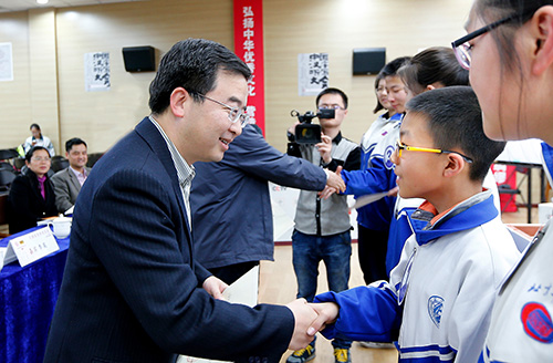 3月30日,北京市语言文字工作委员会主办的第二届“中国汉字听写大会”北京选拔赛暨《北京市实施〈中华人民共和国国家通用语言文字法〉若干规定》十周年纪念活动在北京市第十五中学隆重举行。教育部语言文字应用管理司副司长彭兴颀、北京市教育委员会委员李奕、西城区人民政府副区长陈宁等领导出席决赛及活动颁奖仪式。中国语文现代化学会副会长、秘书长袁钟瑞担任汉字听写大会北京选拔赛主考官;中国语文现代化学会名誉会长、北京大学中文系教授苏培成,教育部语言文字应用研究所原副所长、中国辞书学会原副会长靳光瑾,中国语文现代化学会常务理事赵功德等专家担任评委。