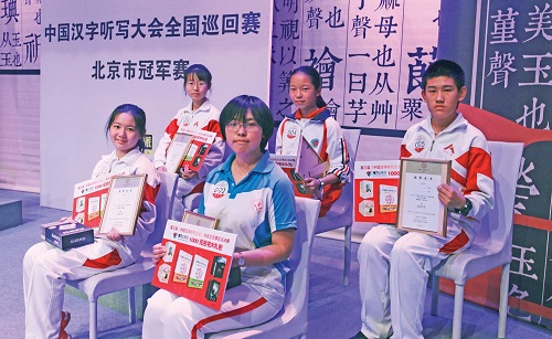 5 月14 日至15 日,2015 中国汉字听写大会全国巡回赛北京市冠军赛在北京航空航天大学举行。经过两天的激烈角逐,北京市牛栏山一中实验学校杨婉婷,中国人民大学附属中学高禹观、李岱宸、向致远,以及密云县第三中学王可盈等五名选手从比赛中脱颖而出,将代表北京市参加第三届中国汉字听写大会全国总决赛。