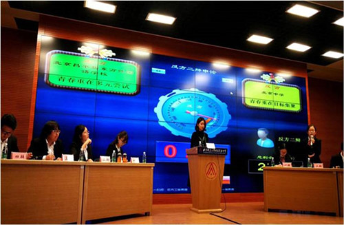 本届赛事的评审团由中国青年政治学院教授刘卫兵先生、立思辰•百年英才高考升学规划研究院院长梅金锁先生、国际关系学院副教授储殷先生、中国经济网评论部主任李焱先生、中央电视台主持人徐卓阳先生、中国法学会消费者权益保护协会邱玉明先生等辩论界资深人士组成。
