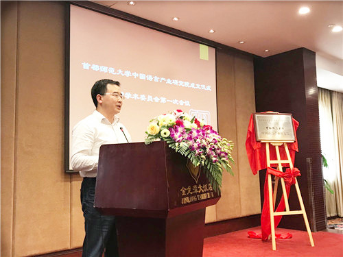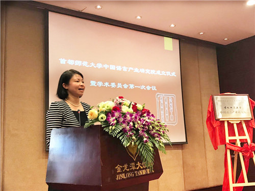 2018年4月28日下午,北京市语言文字工作委员会研究基地“首都师范大学北京语言产业研究中心”更名成立“首都师范大学中国语言产业研究院”成立仪式在首都师范大学举行。教育部语用司、语信司司长田立新、北京市教委、市语委副主任李奕、鲁东大学副校长亢世勇教授、首都师范大学副书记徐志宏出席成立仪式并分别讲话。教育部语信司副处长李强,北京市教委语言文字工作处副处长孙志刚,北京语言大学原党委书记、语言资源高精尖研究中心主任李宇明教授,商务印书馆周洪波总编,武汉大学中国语情与社会发展研究中心主任赵世举教授,中国社会科学院周庆生研究员;教育部语言文字应用研究所所长助理王晖研究员,《语言文字应用》编辑部叶青编审,北京物资学院原副院长刘丙午教授;“声望听力”董事长李琼女士,“中译语通”副总裁张晓丹女士,“科大讯飞”汉语业务总监潘泽亮先生,北师大科技园珠海研究院副院长陈继军先生,“北控捷通”总经理黄铭晖先生以及来自北京冬奥组委、北京语言文字工作协会、北京外国语大学、中国传媒大学、中央民族大学、北京语言大学、扬州大学等单位的专家学者约50余人出席成立仪式。