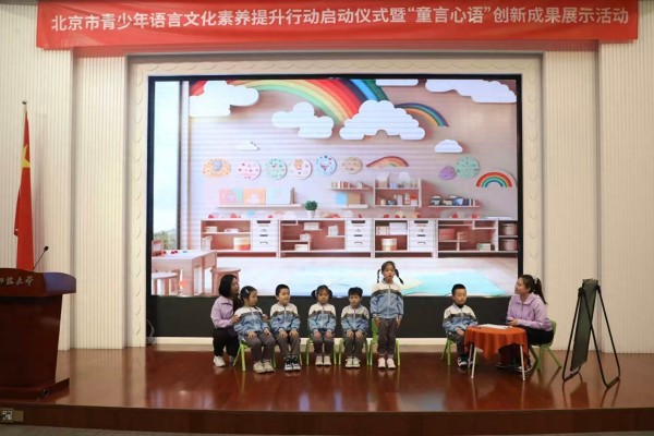 青少年语言文化功底不仅关乎个人成长,更影响国家语言能力建设、中华文化传承及全球语言智能竞争中的战略主动。北京市始终高度重视青少年语言文化传承教育,此次活动部署了素养监测、品牌孵化、资源融通、环境优化、创新传播“五项子行动”,旨在构建全链条青少年语言文化素养提升体系,释放“语言+数智”的叠加价值,实现学生语言文字应用能力和语言文化素养双提升,为北京市青少年语言文化素养提升正式按下“加速键”。活动还集中展示了“童言心语”品牌的创新成果,作为青少年语言文化素养提升行动的先行先试项目,创新推动语言文字与学前教育深度融合,以 “让儿童听懂、敢说、会说”为核心目标,构建起儿童语言文字应用能力系统提升新模式。