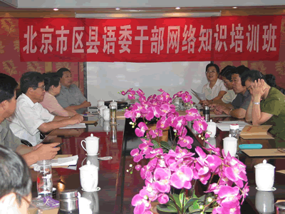 为适应信息时代对语言文字工作发展的需要,提高北京市区县语委干部信息化管理水平,北京市语委于2003年7月14日—17日在平谷区举办了北京市区县语委干部网络知识培训班。教育部语言文字信息管理司司长李宇明同志、中国语言文字网站金惠淑站长和于桂英同志参加了培训班的开班活动典礼。参加会议的还有来自本市十八个区县的语委干部。