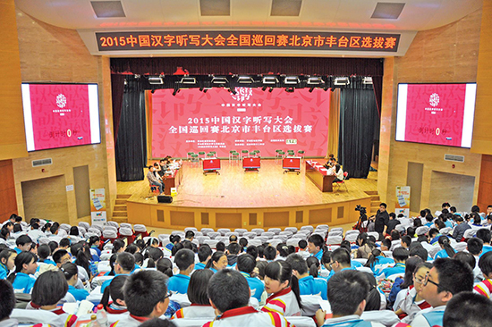 为大力弘扬中华民族优秀传统文化,推广和使用规范汉字,提高中学生乃至全民的汉字书写能力,增强民族自豪感和自信心。4 月25 日,2015 年“中国汉字听写大会”北京市丰台区选拔赛在北京市第十二中学报告厅举行,北京市教委语言文字工作处处长贺宏志、丰台区教委副调研员陈景泉、丰台区语委办公室主任程良、丰台区社区学院院长蒋苇、副院长娄斌出席,来自全区6 所中学的30 名选手和300 余名学生参加了选拔赛。教育部语言文字应用研究所何瑞、富丽、陈菲三位专家担任评委。这次选拔赛采用分组进级、积分制的办法进行,选手根据发音及词条解释进行书写,裁判根据选手书写正确、规范程度公正评判。经过紧张角逐,第十八中学的吴优、第十二中学的江家辰、首师大附属丽泽中学的彭友、第十中学的冯珂然等10 名同学成绩优异,其中的5 名同学将代表丰台区参加市级决赛。随后,与会领导为优秀选手颁发了荣誉证书。