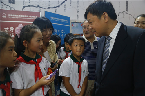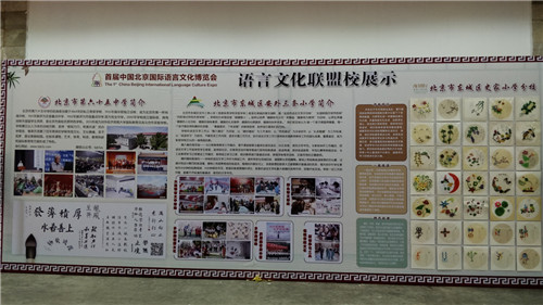 在本届语博会上还有一个特别的展区,即语言文化联盟校展示区。北京市第六十五中学、史家小学分校、安外三条小学作为语言文化联盟校的代表以展板和视频的形式进行了展示,三所学校都选取了本校在语言文字工作方面最具特色的成果,展示受到了相关领导和参观群众的一致好评。
