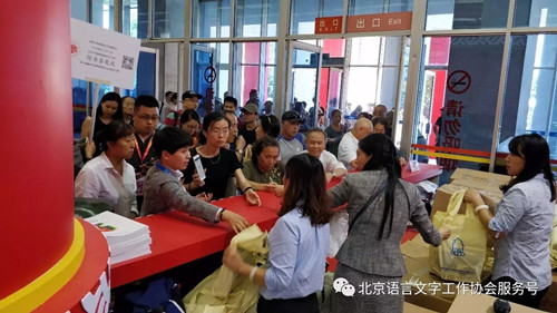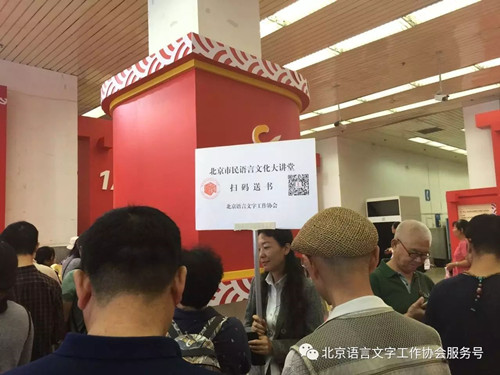 北京语言文字工作协会借“语博会”东风,将北京市民语言文化大讲堂活动搬到展会现场,免费向广大市民赠送语言文化图书,观展市民通过扫二维码或现场登记个人信息两种方式即可获赠图书。