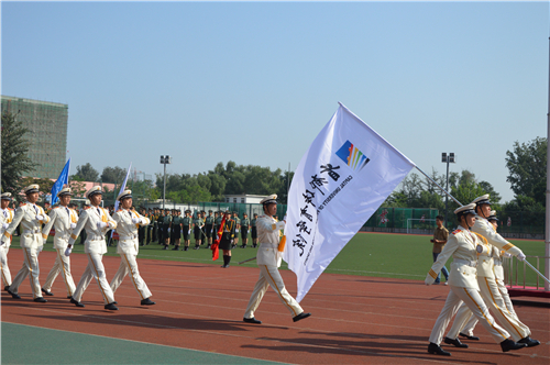 9月21日是第十三个全民国防教育日,上午9:00时,由北京市教育委员会、北京市国防教育办公室主办,北京高校国防教育协会承办,北京农学院协办的北京高校第四届国旗仪仗队检阅式在北京农学院运动场举行。北京市国防教育办公室副主任、市教委副主任郑萼,北京市国防教育办公室副主任、北京卫戍区政治部副主任王巍,北京高校国防教育协会理事长、清华大学党委副书记史宗恺,北京农学院校长王慧敏,北京市教委体美艺处副处长王军,北京高校国防教育协会常务副理事长刘兆武,清华大学党委常委、学生工作部、武装部部长过勇,北京林业大学副校长姜恩来,北京高校国防教育协会秘书长、清华大学武装部副部长王和中,北京高校规范化升旗总教官、中国国旗网创办人赵新风,协会副秘书长及各高校学工部、武装部、团委等部门负责同志出席检阅式,检阅式由北京农学院党委副书记高东主持。