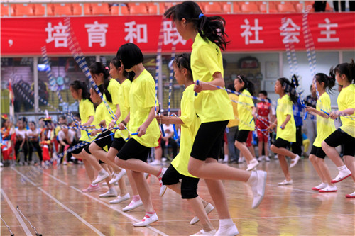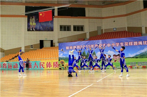由北京学生活动管理中心主办,东城区教委、东城区体育局承办的阳光体育2015年北京市中小学生花样跳绳比赛于2015年5月16日在北京地坛体育馆举行。来自全市14个区县47所学校的872名中小学生参加了本次比赛。