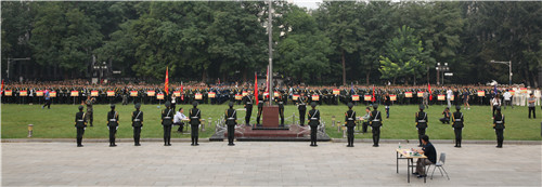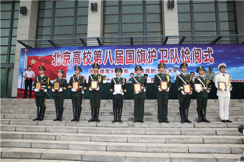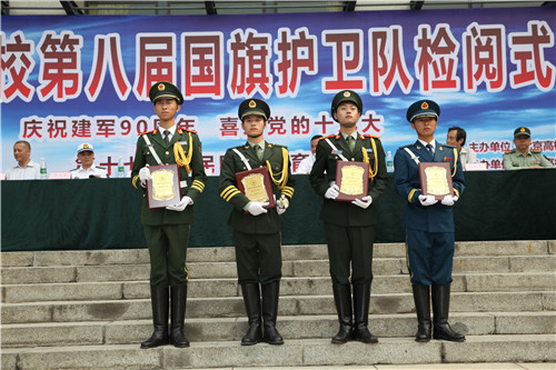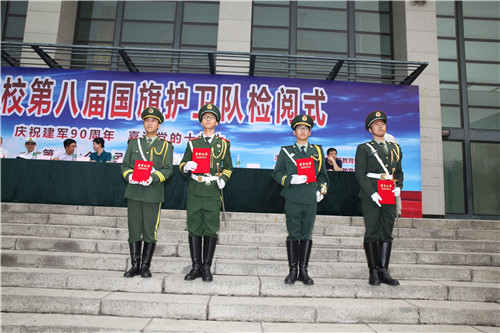 本次国旗仪仗队检阅式旨在庆祝中国人民解放军建军九十周年,宣传我国第十七个全民国防教育日,增强青年学生国防意识。