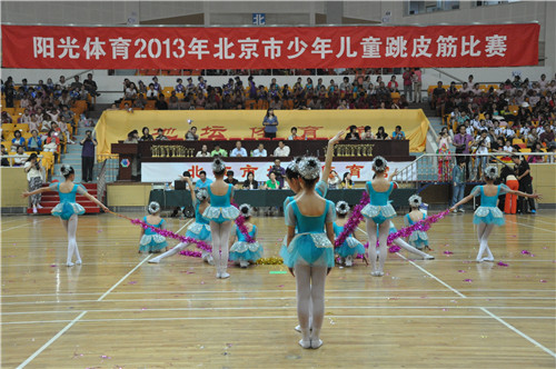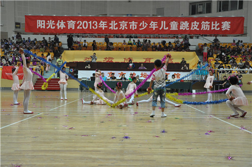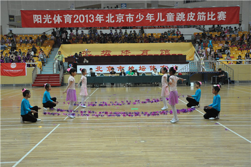 由北京学生活动管理中心主办,东城区教育委员会、东城区体育局承办,府学小学青少年体育俱乐部协办的阳光体育2013年北京市少年儿童跳皮筋比赛于5月18日在北京地坛体育馆举行。