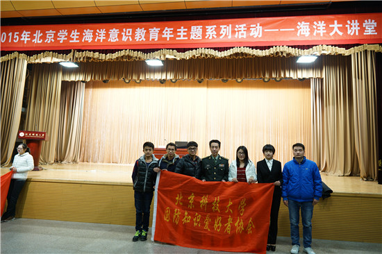 2015年北京学生海洋意识教育年主题系列活动--海洋大讲堂于12月8日晚7点半在北京科技大学教职工礼堂开讲,主讲人为国防大学战役教研部教授孙旭大校。