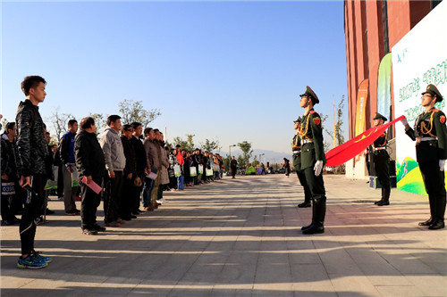 开幕式上,北京化工大学党委副书记、北京高校国防教育协会副理事长、国旗教育分会理事长宋来新致欢迎词,他呼吁大家能够继续发扬定向精神,带动身边的同学参与到这项运动中来,快乐于运动之时,成长与定向当中。随后北京化工大学党委副书记、北京高校国防教育协会副理事长、国旗教育分会理事长宋来新和清华大学武装部长、北京高校国防教育协会秘书长熊剑平共同为北京化工大学“绿野仙踪”军事定向越野协会的新会标揭幕并宣布比赛正式开始。