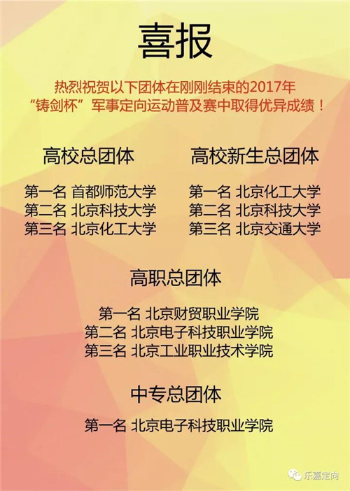 为支持响应十九大号召,提高学生国防素质和身体素质,由北京高校国防教育协会主办,北京化工大学承办,北京乐恩嘉业体育发展有限公司协办的2017年“铸剑杯”学生定向普及赛在北京化工大学昌平校区顺利举行。