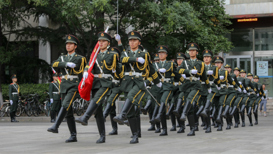 9月15日,北京五环外的上空防空警报鸣响,在提醒着人们我国第十八个全民国防教育日的到来,而在北京工业大学的校园里,一面面鲜艳的国旗猎猎飘扬,一支支身着各校国旗仪仗队礼服的大学生们,正用他们自己的方式在这个特殊的日子抒发着赤子情怀。