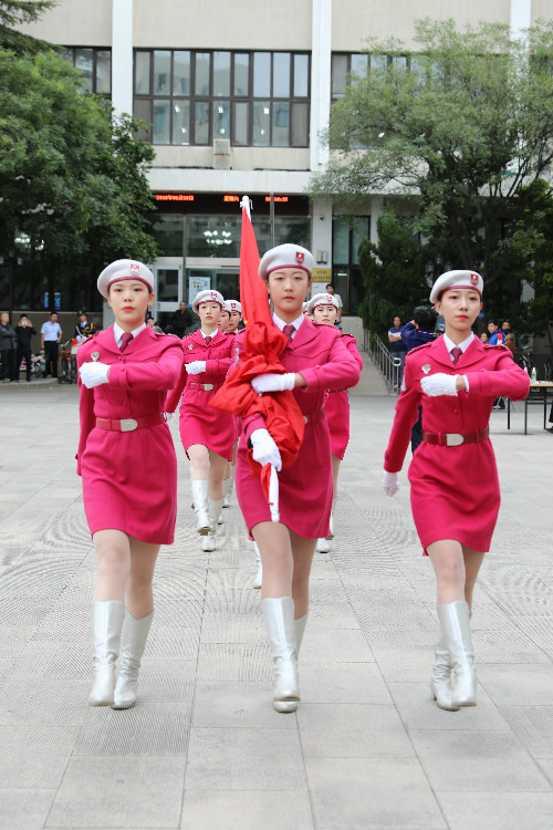 第一阶段是各高校国旗仪仗队升旗检阅式。北京新风旗帜文化中心主任赵新风担任了本次检阅式的总指挥。
