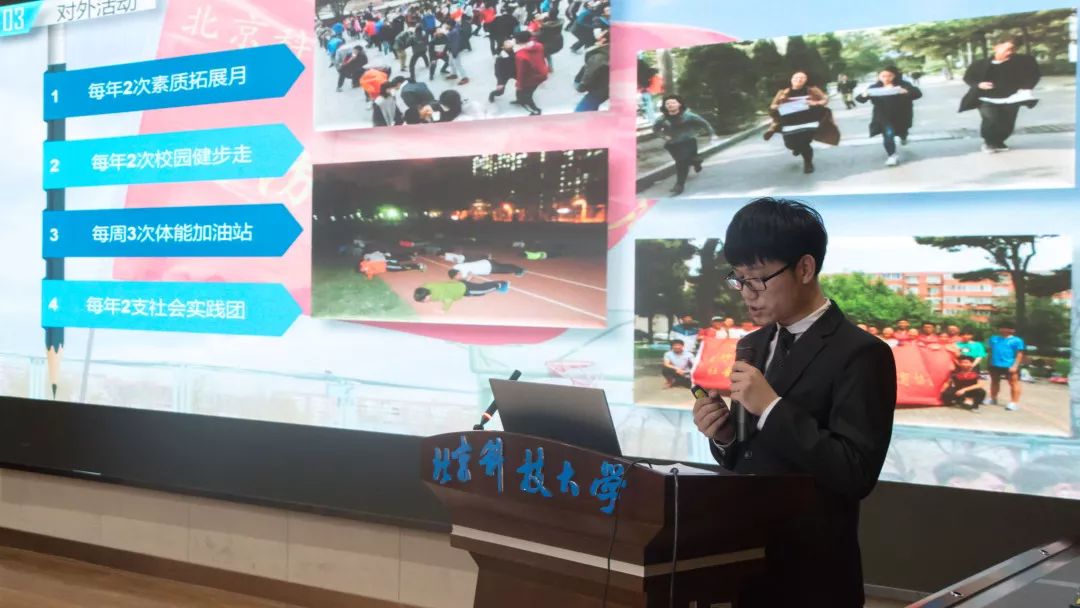 本次北京高校国防教育类社团交流活动分为四个阶段。第一阶段对报名参加活动社团的申报材料进行初步评审,甄选大会主交流社团;第二阶段对进入大会主交流环节的社团骨干开展专题培训;第三阶段国旗教育类、国防体育类、国防军事类、退役士兵类国防社团,围绕特色活动、活动经验、工作遇到的困难与问题以及今后的思考进行研讨;第四个阶段社团大会交流展示,9所高校的14个社团就自身建设、活动开展、主要荣誉、工作展望等方面进行了展示。