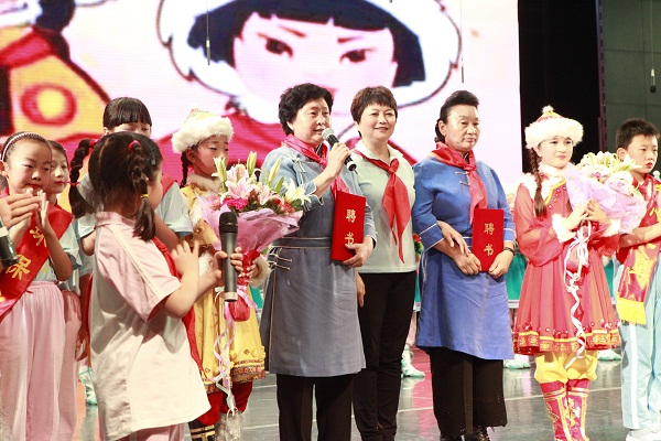 《北京市第十六届学生艺术节》草原英雄小姐妹龙梅、玉荣担任东城区回民实验小学校外辅导员、东城区回民实验小学少先队大队同时命名为"龙梅玉荣"大队